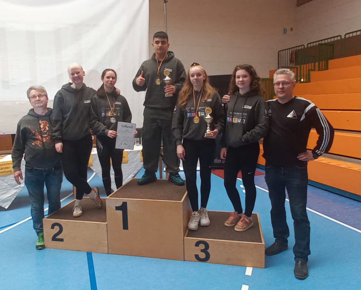Eine Mannschaft besteht hier jeweils aus 8 Sportlern von denen 5 in die Wertung kommen und jeweils mindestens 1 Mädchen oder Junge enthalten sein muss.