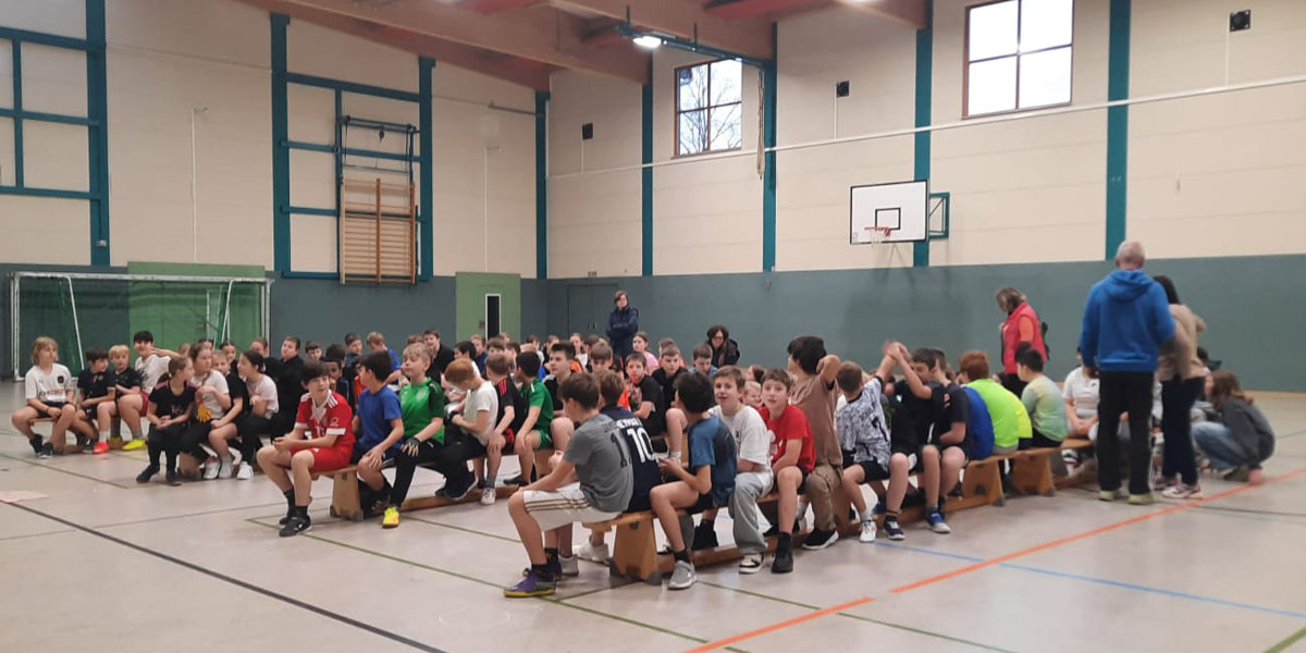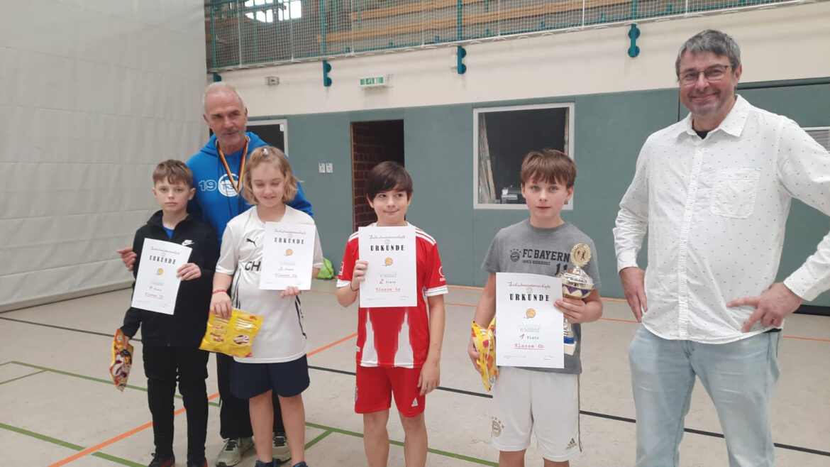 In der vergangenen Schulwoche fand für die Klassenstufen 5 und 6 das beliebte Zweifelderballturnier statt. Zu dieser Veranstaltung hatten die Sportlehrer auch eine Mannschaft der Grundschule eingeladen. Alle Teams kämpften mit großem Einsatz um den Sieg, den etwas glücklich, aber nicht unverdient, die Klasse 6b erzielte. In der als Doppelrunde durchgeführten Meisterschaft gewannen die beiden sechsten Klassen jeweils einmal gegeneinander, so dass die Treffer im Spiel knapp zu Gunsten des Teams 6b den Ausschlag gaben. Auch hier wurden alle Mannschaften mit einer Urkunde und süßen Vitaminen bedacht.