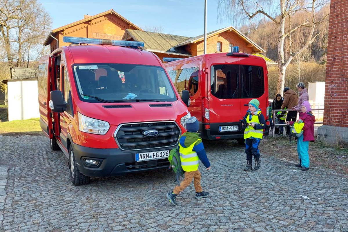 Bereits am nächsten Tag standen mit „Tatütata“ 2 Autos der „Freiwilligen Feuerwehr Geratal“ vor der Tür des Kindergartens, um die Kids zum Bahnhof nach Geraberg zu bringen. Für einige Kinder war es die allererste Tour mit der Bahn, was die Nächte davor bereits unruhig machte.