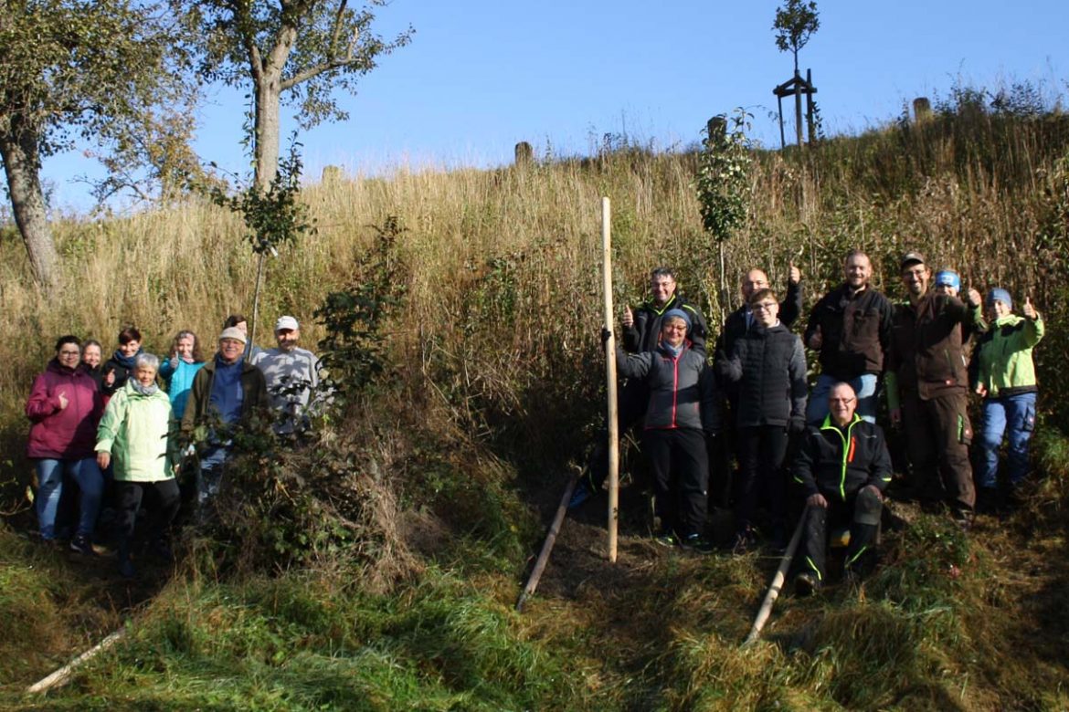 An einer Streuobstwiese gibt es immer etwas zu tun. Das weiß auch der „Grawereder Jong“ Helmut Greßler. Er und seine Mitstreiter Torsten Zylla, Karsten Wagner, Andy Rödiger und Henry Lipfert befreiten die Streuobstwiese im Voraus von Unrat und Unterwuchs, sodass die sechs Löcher für die Aktion vorbereitet werden konnten. Hier gab es Unterstützung durch die Gemeinde Geratal, die für die Arbeiten am Hang Motorsensen zur Verfügung stellte. Um die Pflege dieses Geländes zu bewerkstelligen, kam ebenso ein Schlegelmäher mit Kettenantrieb zum Einsatz. Dieser wurde von den „Grawereder Jong“ über Lottomittel der Sparkasse Arnstadt-Ilmenau, einen Zuschuss der ehemaligen Gemeinde Gräfenroda und Spenden bereits im Jahr 2018 angeschafft.