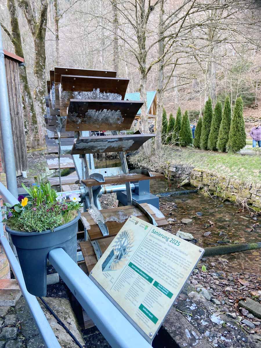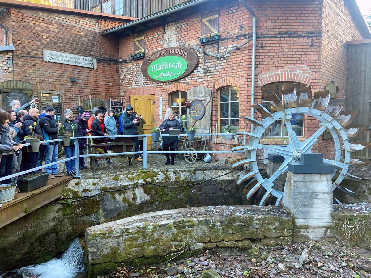 Dies wurde im Außenbereich eindrucksvoll demonstriert, als das sanierte Mühlrad feierlich in Gang gesetzt wurde.