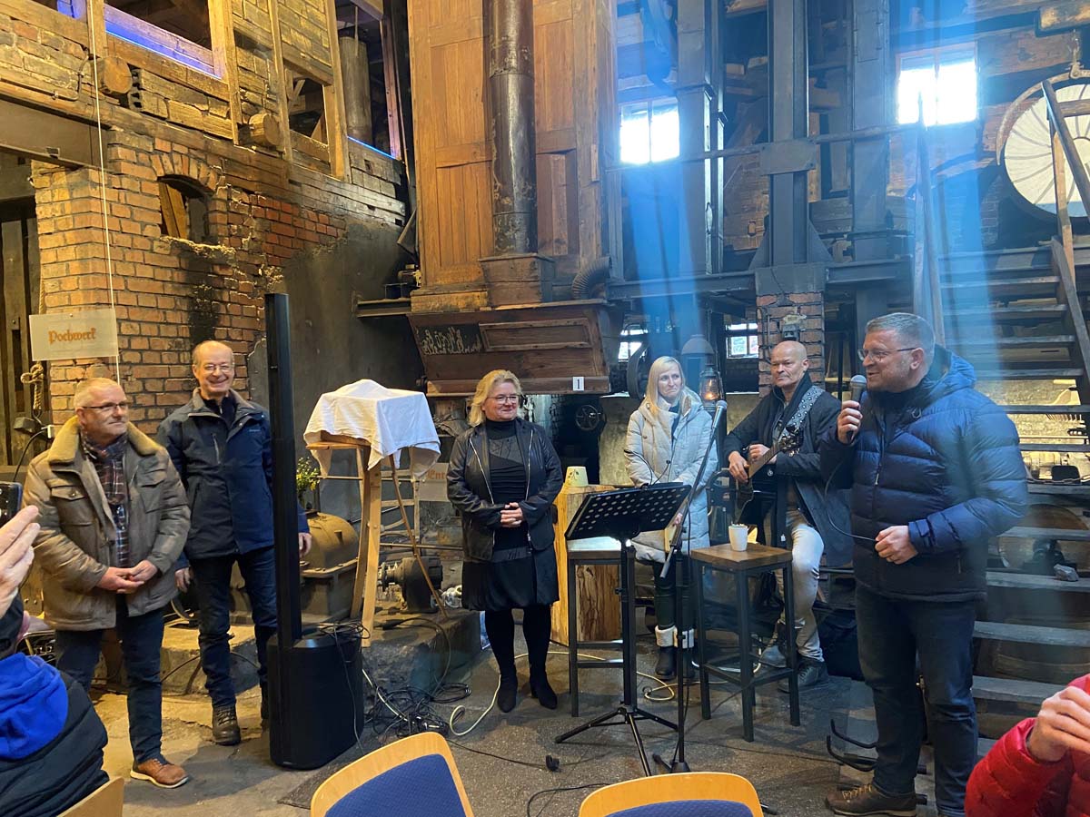 Im Mittelpunkt der Veranstaltung stand neben der Würdigung der Sponsoren auch ein Rückblick auf die bewegte Geschichte der Braunsteinmühle. In ihrer Festrede machte Silke Hofmann deutlich, welchen langen Weg das Objekt seit der Stilllegung des Bergbaus im Jahr 1949 zurückgelegt hat. Nach dem endgültigen Ende des Betriebes im Jahr 1981 drohte der Verfall. Doch engagierte Bürger und Visionäre wie Rüdiger Krause hielten an der Idee fest, die Mühle als technisches Denkmal zu bewahren. Die Mitstreiter von Rüdiger Krause waren damals hauptsächlich Frank Veitenhansel, Carmen Rux und Klaus Bödrich, um nur einige der Initiatoren zu nennen.