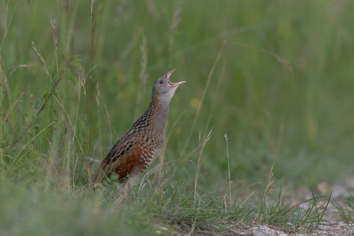 Früher war der Wachtelkönig in Mitteleuropa weit verbreitet, doch heute ist er selten geworden. Das Problem: Seine Nester liegen gut versteckt im hohen Gras – genau dort, wo im Frühsommer viele Wiesen gemäht werden. Oft geschieht das zu früh, bevor die Jungvögel flügge sind. So gehen jedes Jahr viele Bruten verloren. Wenn wir wissen, in welchen Wiesen der Wachtelkönig brütet, kann die Natura 2000-Station Gotha/ Ilm-Kreis gezielt Wiesennutzer ansprechen. Deshalb brauchen wir ehrenamtliche Helfer, die bereit sind, nachts in den Wiesen nach dem Ruf des Wachtelkönigs zu horchen. Nur wenn wir wissen, wo er ist, können wir ihn schützen.