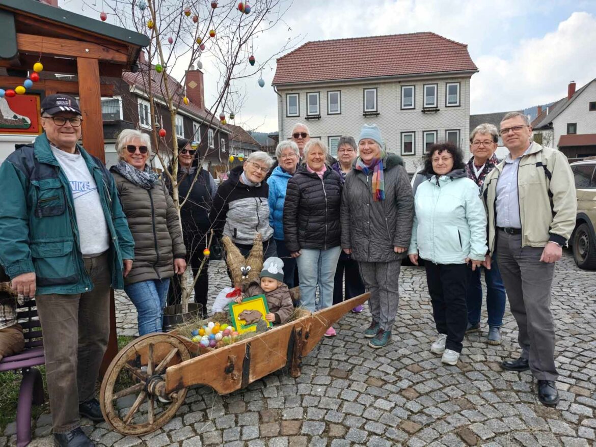 Dreizehn Mitglieder des Heimat-und Verkehrsverein s schmückten am 21.03.2026, ab 11.00 Uhr, den Plan österlich.