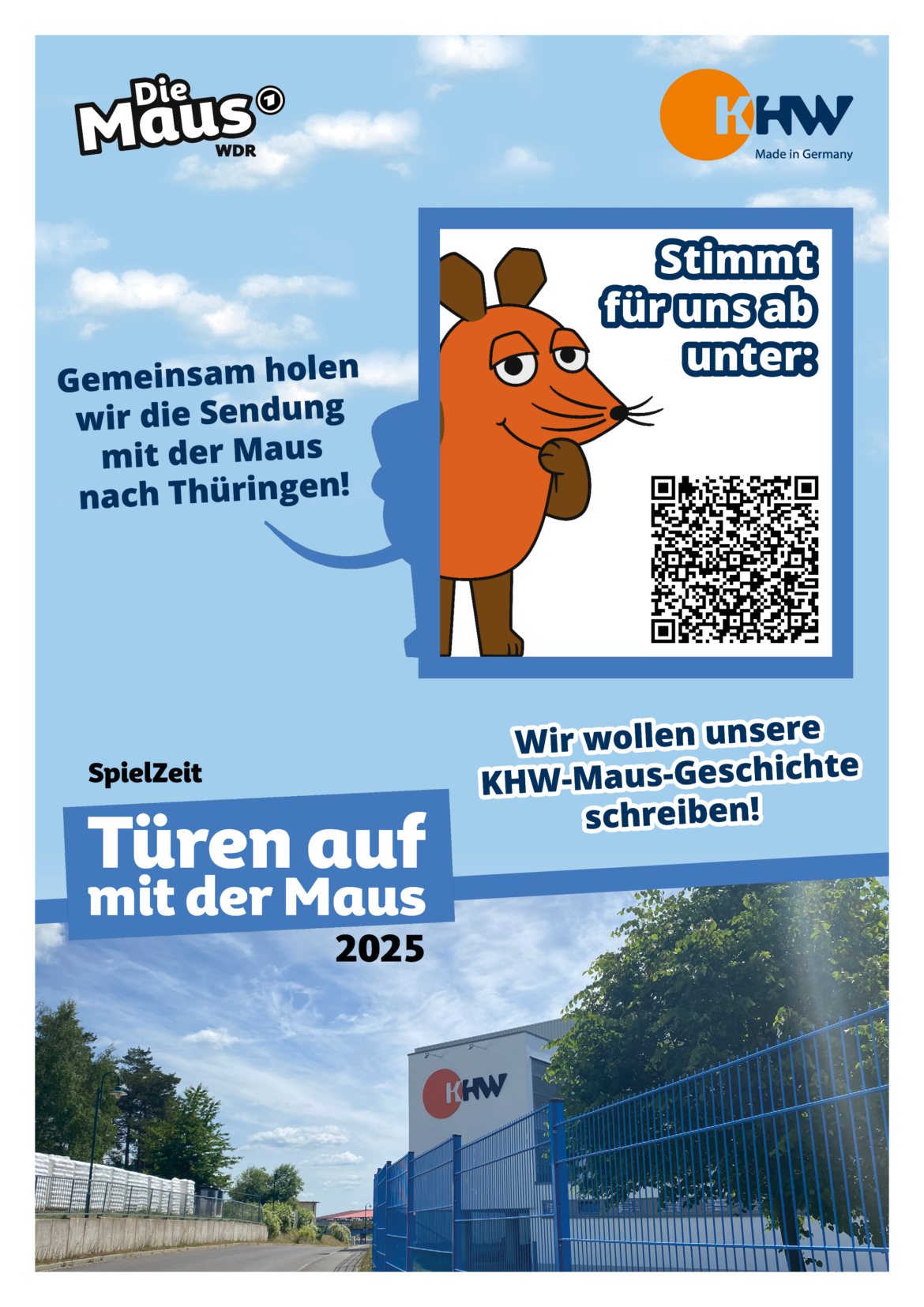 Große Neuigkeiten: Die KHW wurde für den Maus-Türöffner-Tag 2025 ausgewählt! Mit eurer Hilfe kann die Sendung mit der Maus zu uns nach Geschwenda kommen!