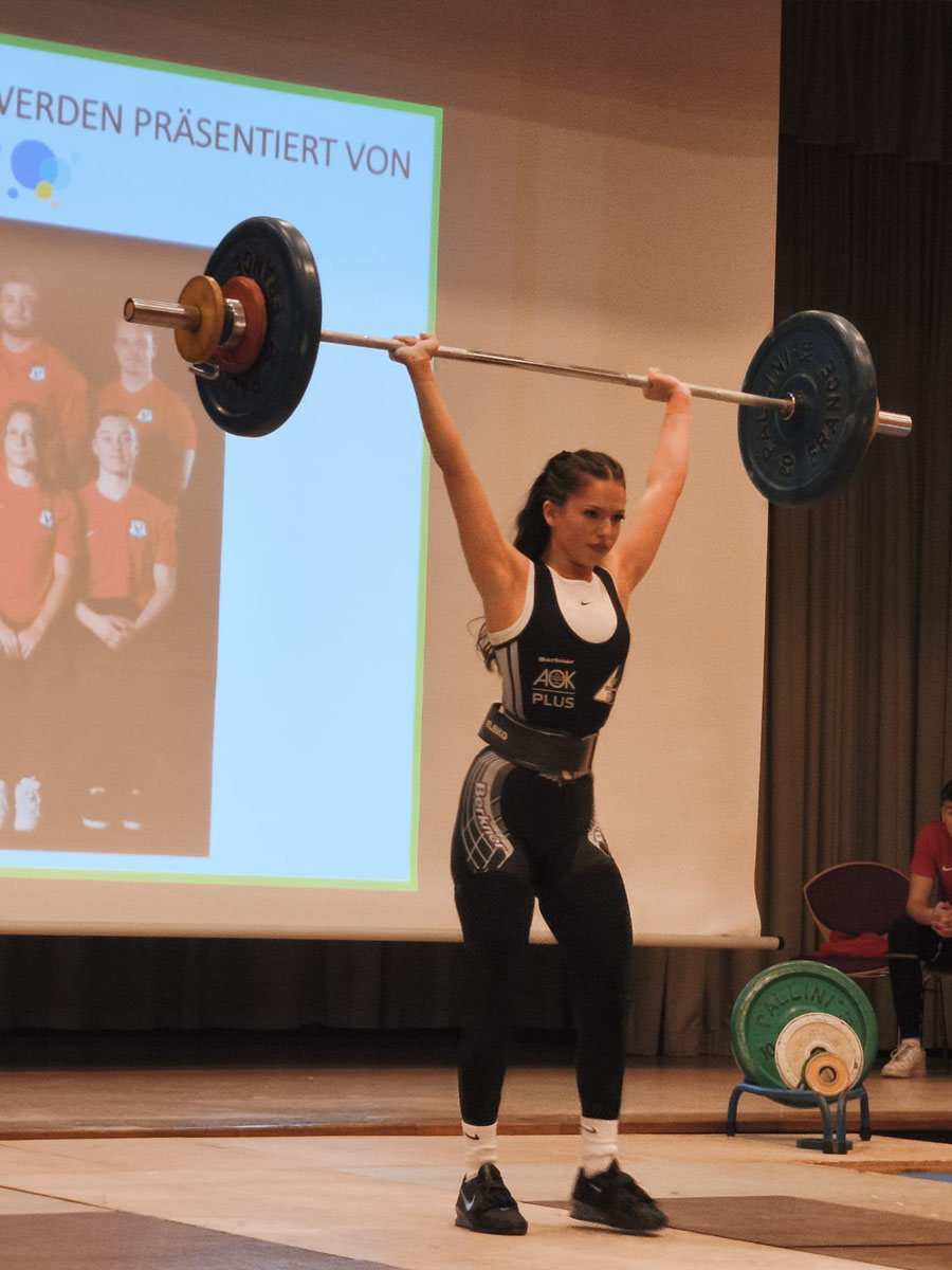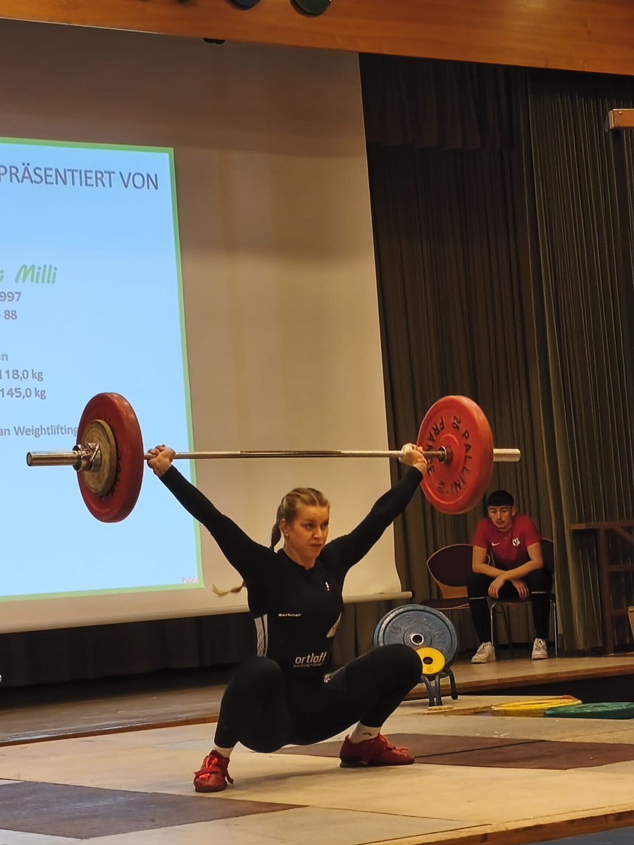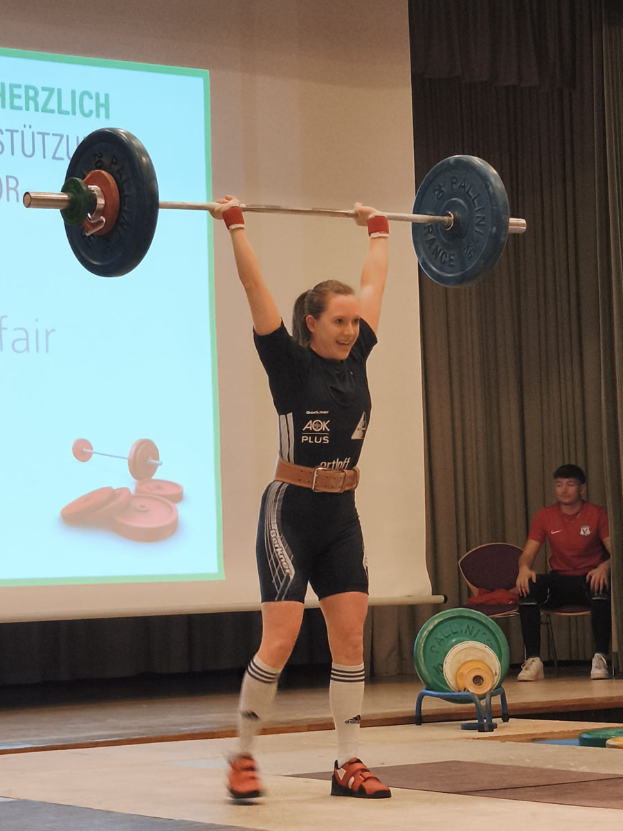 - Lotta Frank 93 Relativpunkte (52.5 kg Körpergewicht/128 kg Zweikampf-60 kg Reißen/68 kg Stoßen)