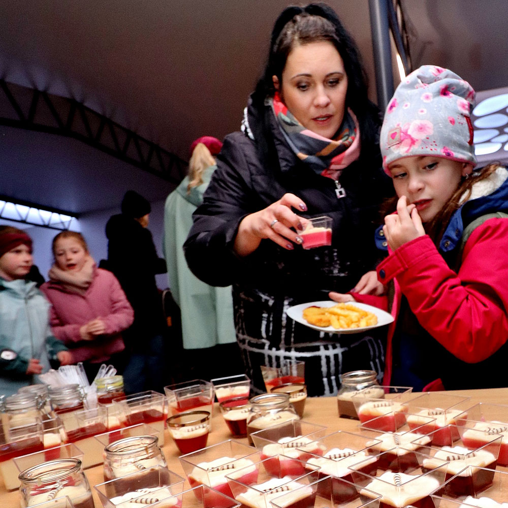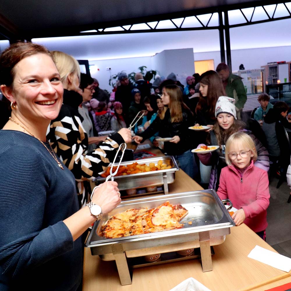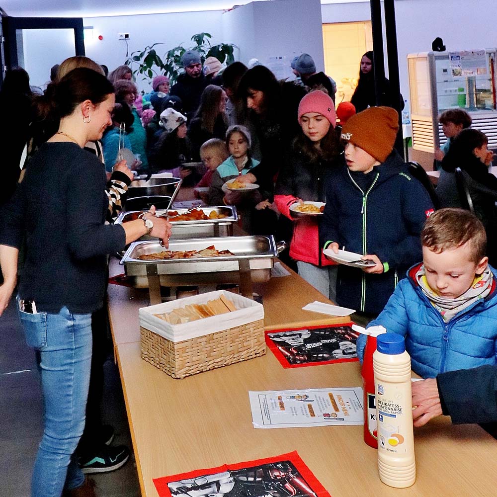 Im Waldbad angekommen, wurden die Gäste mit einem liebevoll vorbereiteten Angebot an Speis und Trank empfangen. Für die Erwachsenen gab es Bratwürste, Brätel und wärmenden Glühwein, die perfekt zur herbstlichen Abendstimmung passten. Die Kinder wurden kostenlos mit allem versorgt, was das Herz begehrt: Pommes, Dino-Schnitzel, Nuggets, Wiener Würstchen, hausgemachte Pizza, Vanille- und Schokopudding sowie rote und grüne Grütze ließen keine Wünsche offen.
