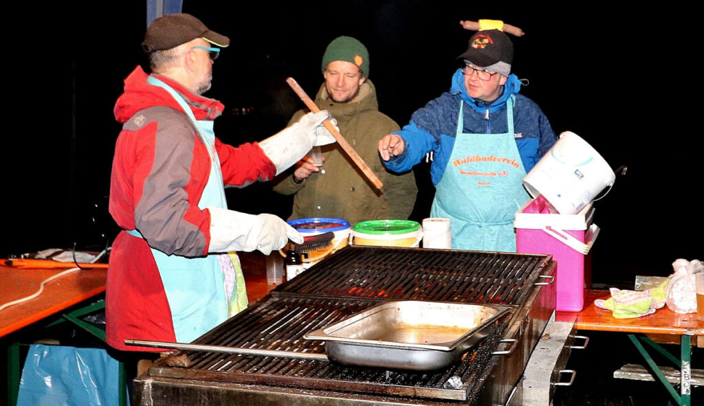 Mit herzlicher musikalischer Begleitung durch den Spielmannszug Geschwenda setzte sich eine beeindruckende Lichterkette in Bewegung, die sich stimmungsvoll ihren Weg zum Waldbad bahnte. Die Mischung aus funkelndem Fackelschein und festlicher Musik sorgte schon auf dem Weg für eine besondere Atmosphäre.