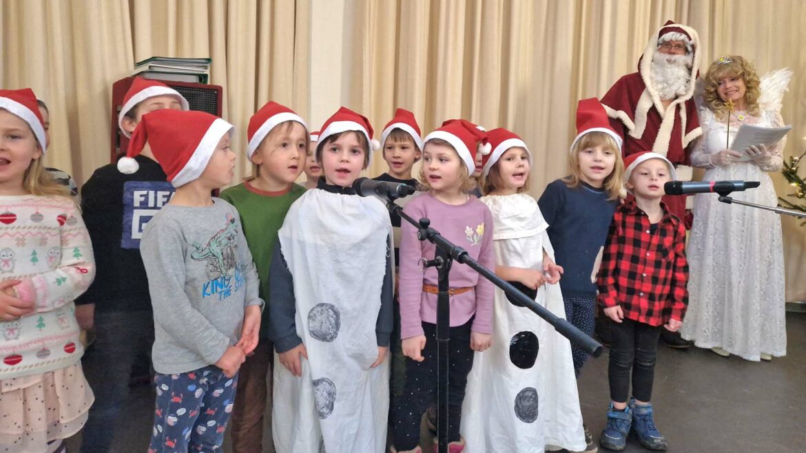 Gelungen war sie, die Weihnachtsfeier am 4. Dezember. Dies konnte man schon erahnen, als sich ab 14.30 Uhr der Saal im Generationentreff immer weiter mit Gästen füllte. Und man glaubt es kaum, die 100 Plätze, die liebevoll von freiwilligen Helfern einzelner Fraktionen und den emsigen Mitgliedern des Fördervereins unserer Regelschule eingedeckt worden waren, reichten lange nicht aus.