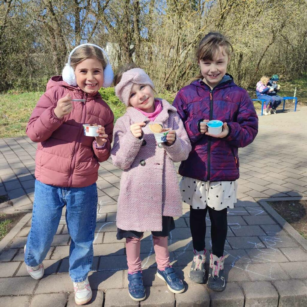 Während der Projekttage rund um Ostern mit Sportspielen, Experimenten, Knobelaufgaben, Basteleien und Rangerführungen wurde unsere Grundschule mit eiskalten Ostereiern in Form von leckeren Eiskugeln der Eismanufaktur Geratal überrascht.