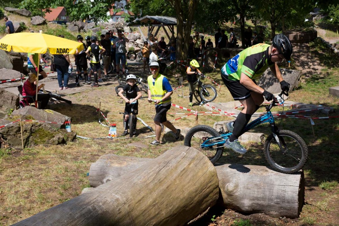 Neben den üblichen selbst gebauten Sektionen in der Natur, bei denen die Fahrer über Steine, Baumstämme und Felsen fahren mussten, gab es diesmal noch etwas Neues: