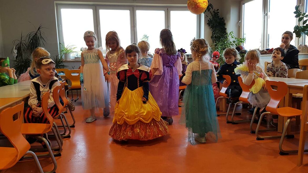 Bei einer Modenschau konnten alle Kinder ihre Kostüme präsentieren bevor gemeinsam dicke Krapfen schnabuliert wurden.