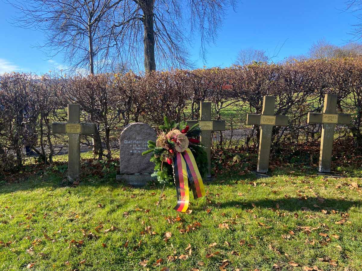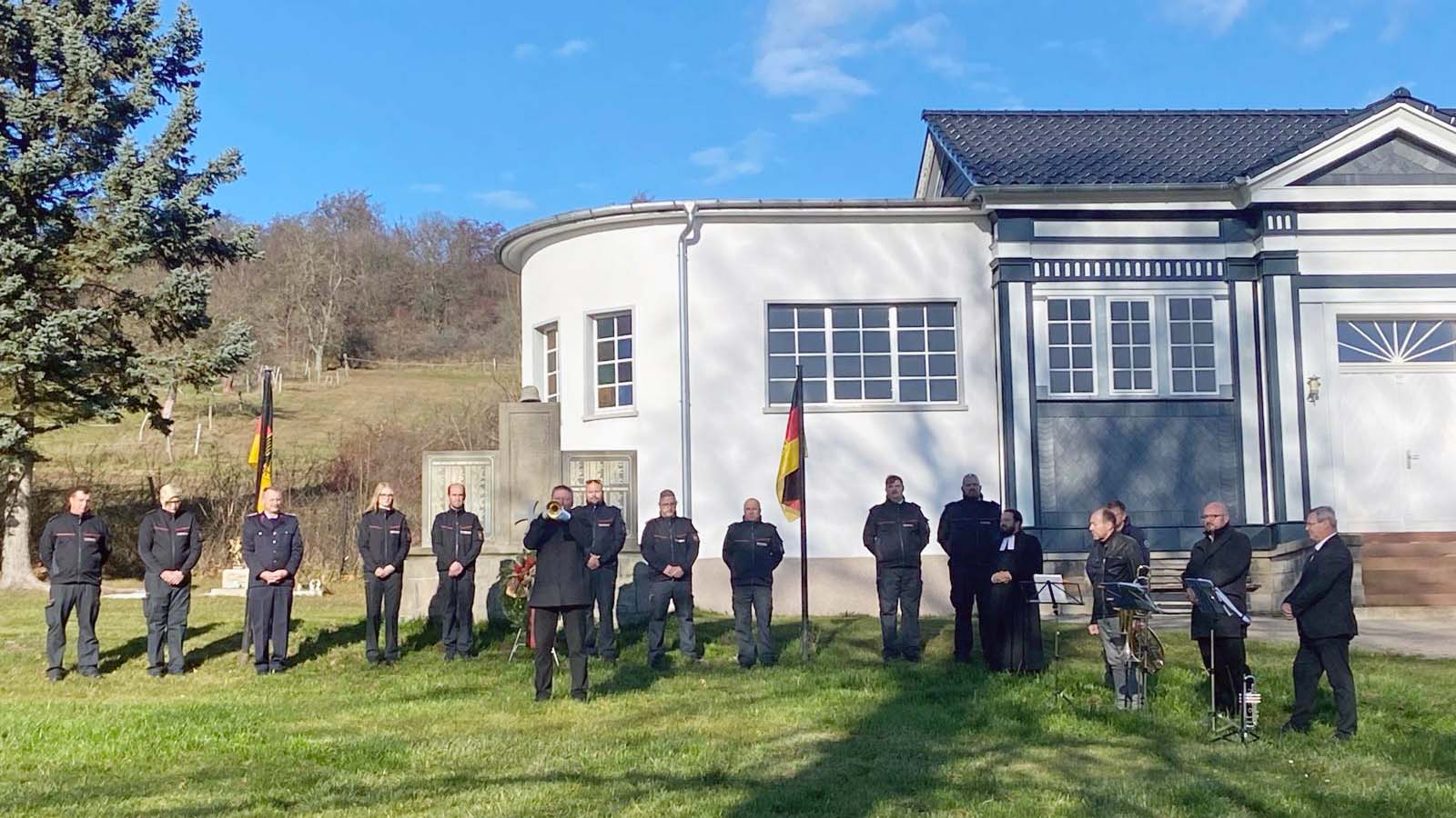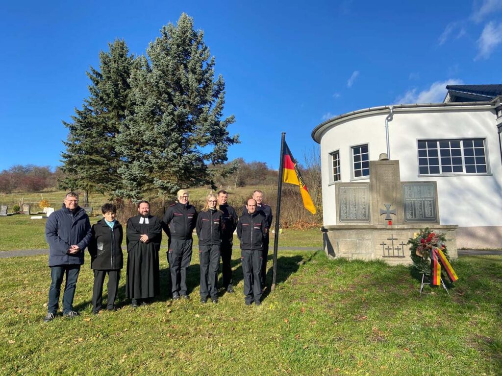 Sie begann mit einem Gottesdienst in der Kirche St. Laurentius. Im Anschluss wurden auf dem Friedhof durch die Kameradinnen und Kameraden der Freiwilligen Feuerwehr Geratal (Ortsteilwache Gräfenroda), Pfarrer Sebastian Pötzschke sowie Ortschaftsbürgermeister Dominik Straube Kränze an fünf Kriegsgräbern niedergelegt.