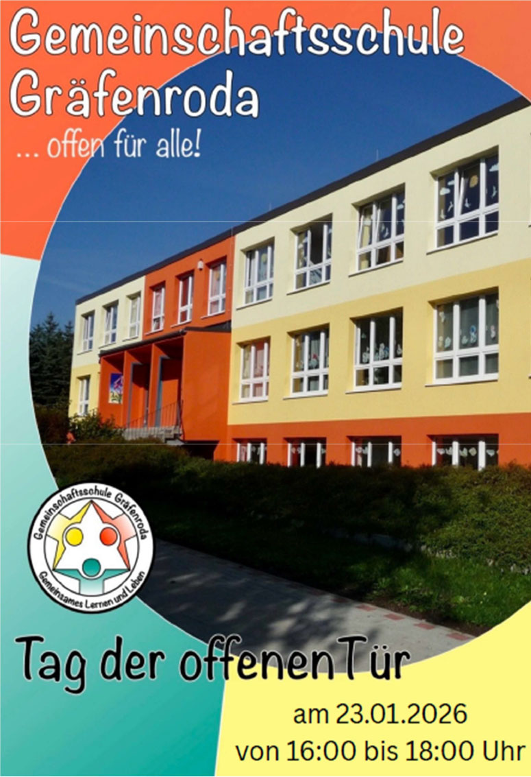 Das Schulteam der Staatlichen Gemeinschaftsschule Gräfenroda und der Förderverein unserer Schule freut sich auf Ihren Besuch.