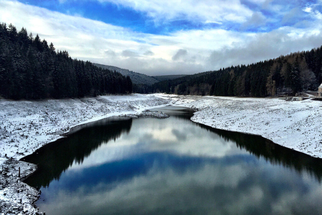Die Lütsche-Talsperre, ein Meisterwerk der Ingenieurskunst, ist ein Highlight der Wanderroute. Sie fügt sich harmonisch in die Landschaft ein und lädt zum Verweilen ein.