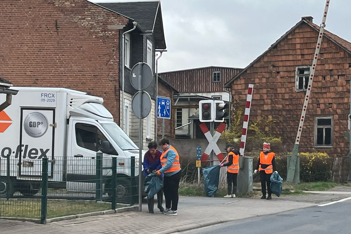 Anschließend machten sich die Teilnehmenden in mehreren Gruppen auf den Weg, um das Ortsbild von Gräfenroda sowie dessen Umgebung von achtlos weggeworfenem Müll zu befreien.