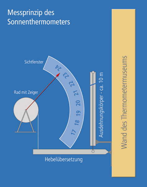 ist ein klassisches Stabausdehnungsthermometer, das mit 10,10 m das größte Stabausdehnungsthermometer der Welt in Verbindung mit einer Zeigeranzeige ist.