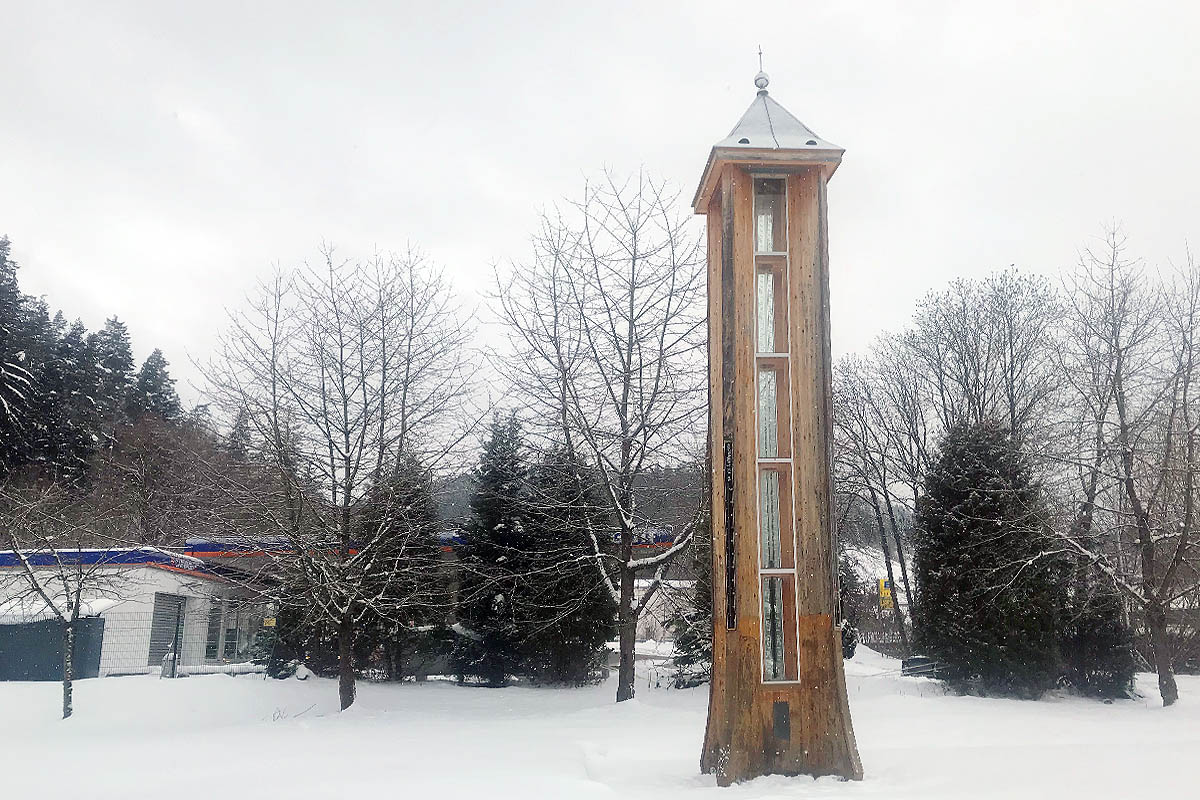Der Turm ist eine Holzkonstruktion mit innenliegenden Thermometerkapillaren. Die Höhe des Turmes beträgt 11,11 m. Der Turm ist aus vier Leimholzbindern errichtet, die die Anzeigen in Celsius, Kelvin, Réaumur und Fahrenheit aufweisen.