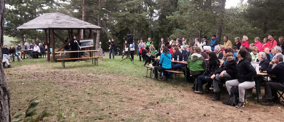 Am 3. Oktober war es erneut so weit: Die nunmehr achte Bergandacht mit herrlichem Ausblick. Bei mildem jedoch stürmischen Wetter fanden sich rund 200 Besucher verschiedener Altersgruppen auf dem Kammberg ein, um der Einladung des Gemeindepfarrers Sebastian Pötzschke und den „Grawereder Jong und Freunde“ vom Heimatverein Gräfenroda e. V. zu folgen.