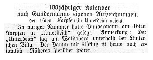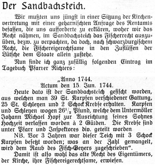 Es wurde mit der rückwärtigen Verlängerung des Grabens von der Lütsche bis ins Kehltal begonnen. Man wollte noch mehr Waldungen am Schloßberge, am großen und kleinen Löffelbühl, Eckhartsberg, Tragberg usw. für die Flöße erschließen und dadurch die vorderen Waldungen schonen. Dieser Bau ist nie beendet worden, er scheiterte an der Geldfrage.