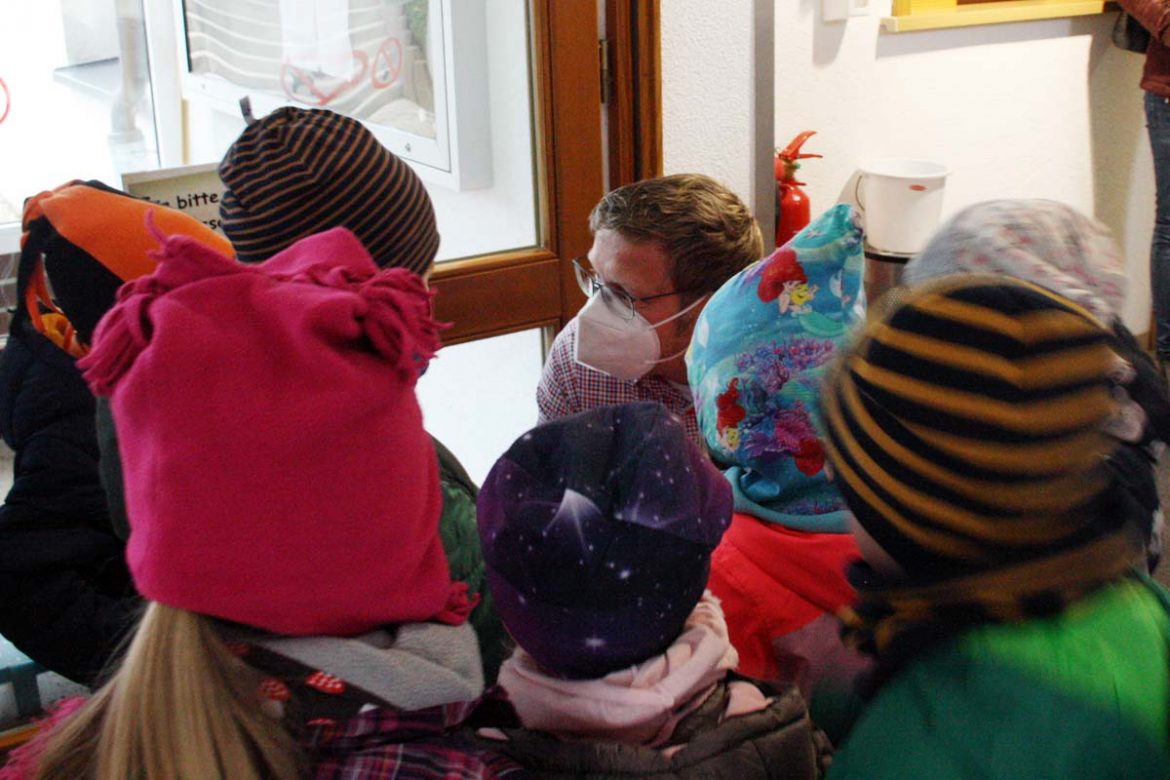 Kinder des Evangelischen Kindergartens „Regenbogen“ in Gräfenroda besuchen Bürgermeister Dominik Straube