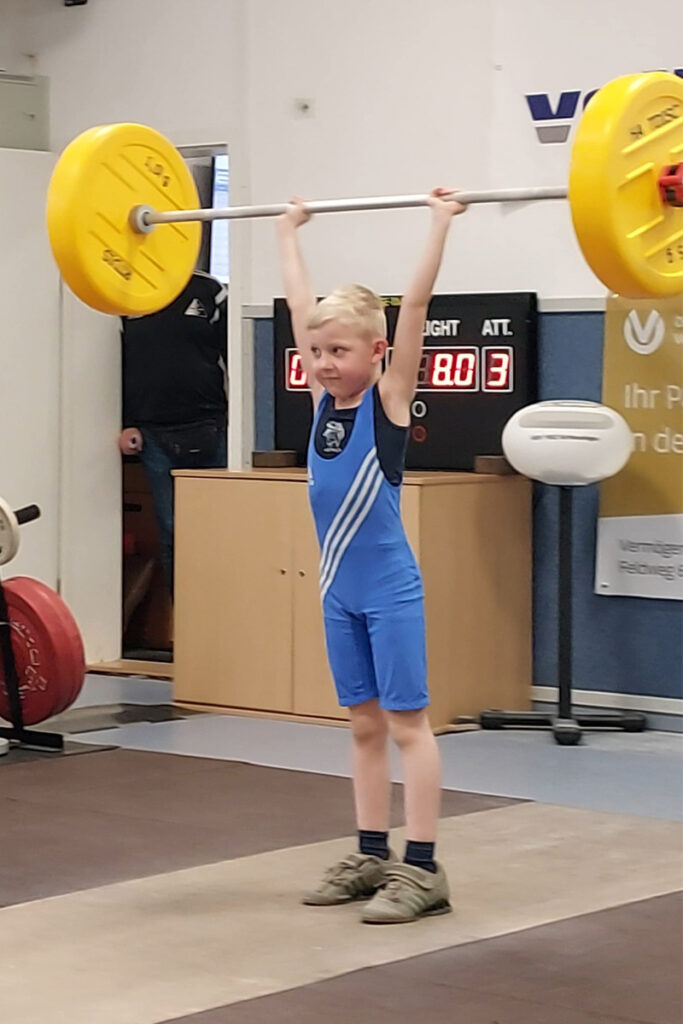 Bei den jüngsten männlichen Startern Jahrgänge 2019 und jünger die nur in der Athletik antraten gewann Hannes Leonhardt vom SV 90. In der Altersklasse 2017/18 glänze an diesem Tag Fritz Geuther. Ihm gelangen in allen 3 Disziplinen neue Bestleistungen und damit siegte er mit über 90 Punkten Vorsprung. Auf Platz 4 Aaron Dobranowski vor den weiteren Sportlern des SV 90 Kurt Ronninger, Urs Kübler und Nikolas Kullmann. Urs verbesserte seine Bestleistungen um insgesamt 5 kg.