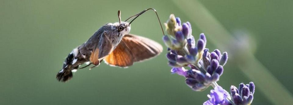 Das Taubenschwänzchen (Macroglossum stellatarum), auch Kolibrischwärmer genannt, ist auf nektarreiche Futterpflanzen angewiesen.