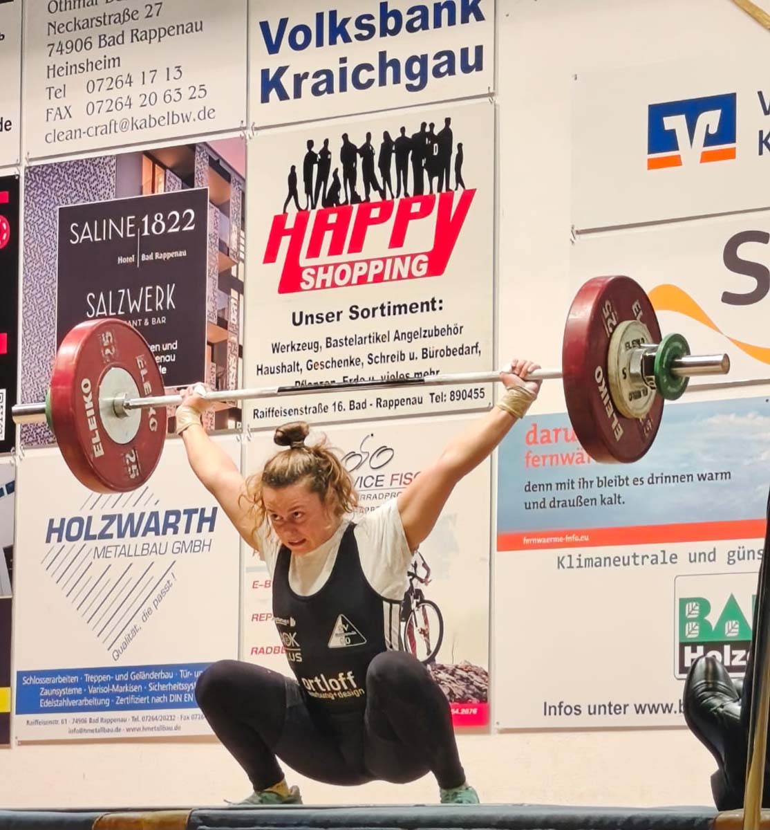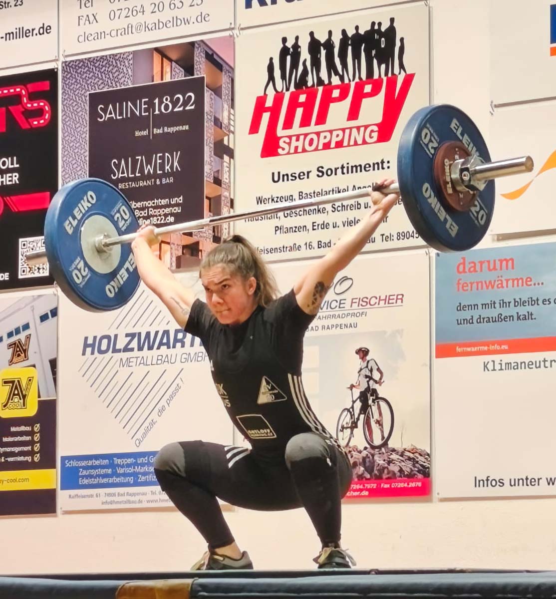 Lotta Frank 98 Relativpunkte (52.4 kg Körpergewicht/133 kg Zweikampf-63 kg Reißen/70 kg Stoßen)