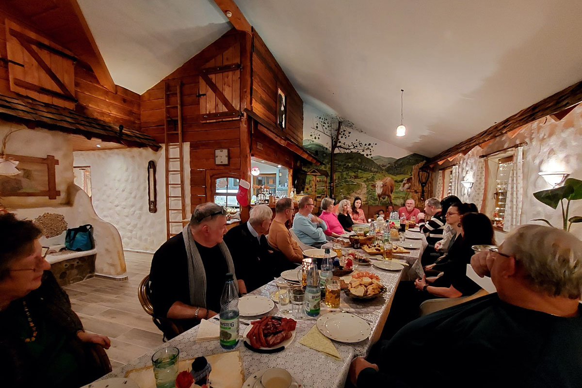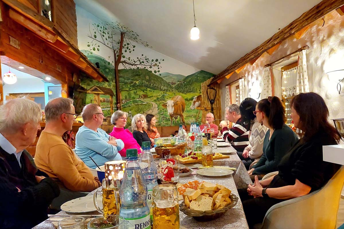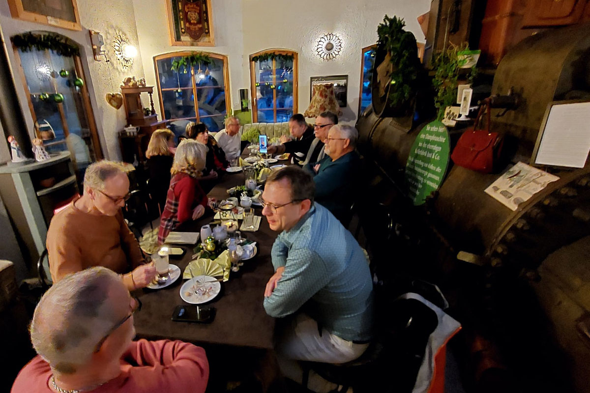 12.00 Uhr trafen sich alle im Schullandheim bei Jens Hertwig, wo es ein leckeres Mittagessen gab. Auch die Lahnauer waren zwischenzeitlich angereist, um auch unseren Weihnachtsmarkt mit beizuwohnen. Somit waren alle Partnerschaftsgemeinden mal an einem Tisch. Ein berührender, schöner Augenblick. Die Lahnauer kannten unseren Markt schon und für die Gäste aus Morbach und Pont-Sur-Yonne war es ihr erster Besuch dort. Beeindruckt waren sie, was doch unser kleiner Ort Geraberg so auf die Beine stellt. Abends saß man wieder gemütlich beim Resteressen bei Detlef und Heike. Schnell verging die Zeit und der Abreisetag wurde greifbar.