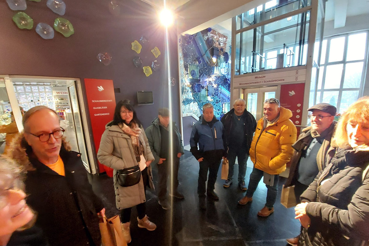 Vormittags 10.00Uhr ging es mit unseren Gästen nach Lauscha, um ihnen die traditionelle Thüringer Glaskunst zu zeigen. Nicht schlecht staunten sie über so viel Gläsernes auf engstem Raum und ständig konnte man ein Ah und Oh vernehmen. Interessiert schauten sie dem einen oder anderen Glasbläser beim Arbeiten über die Schulter. Fasziniert und mit tollen Eindrücken im Gepäck fuhren unsere Gäste am Nachmittag in Richtung Heimat. Für alle Beteiligten war es ein herzerwärmendes Wochenende, was weiterhin gepflegt werden muss.