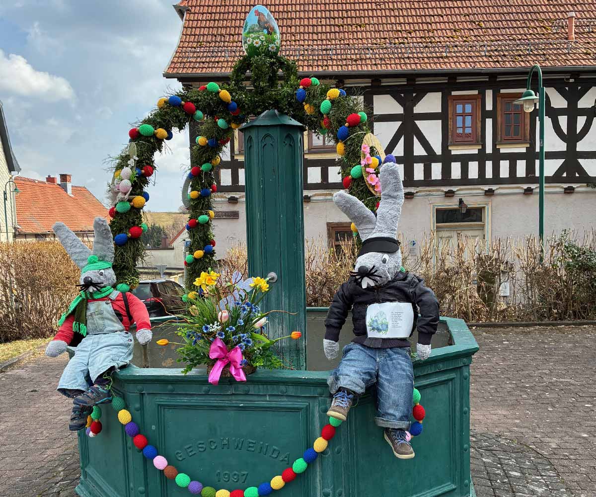 Einen festlichen Osterbrunnen gestalteten auch in diesem Jahr wieder die Organisatoren des Seniorentreffs vor der Apotheke in Geschwenda.