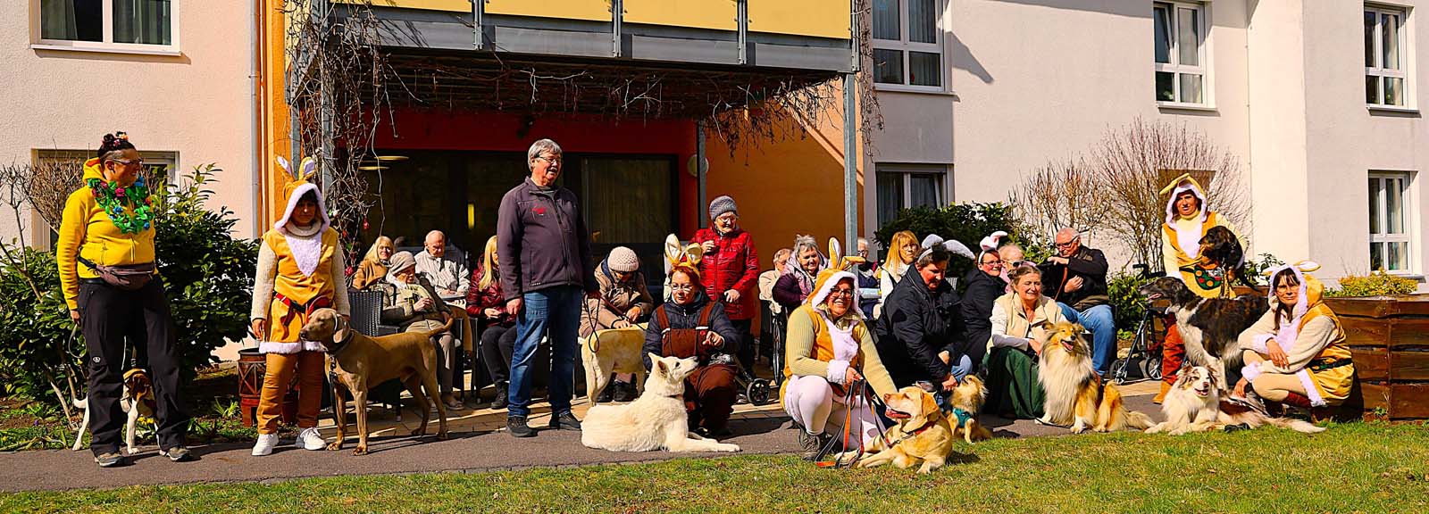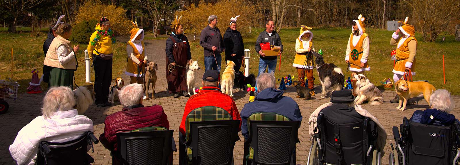 Seit 2019 besucht der Hundesportverein mehrmals im Jahr das DRK Seniorenheim in Geraberg, viele unserer Hunde sind dort inzwischen namentlich bekannt und gern gesehene Gäste. Selbstverständlich, dass wir auch in diesem Jahr wieder zum Osterbesuch mit einem Programm die Bewohner erfreuen wollten. Anschließend ging es mit Bewohnern und unseren Hunden in den Osterparcours, ein zünftiger Eierlauf musste absolviert werden, bevor man sich mit einem Eierlikörchen anschließend stärken konnte.