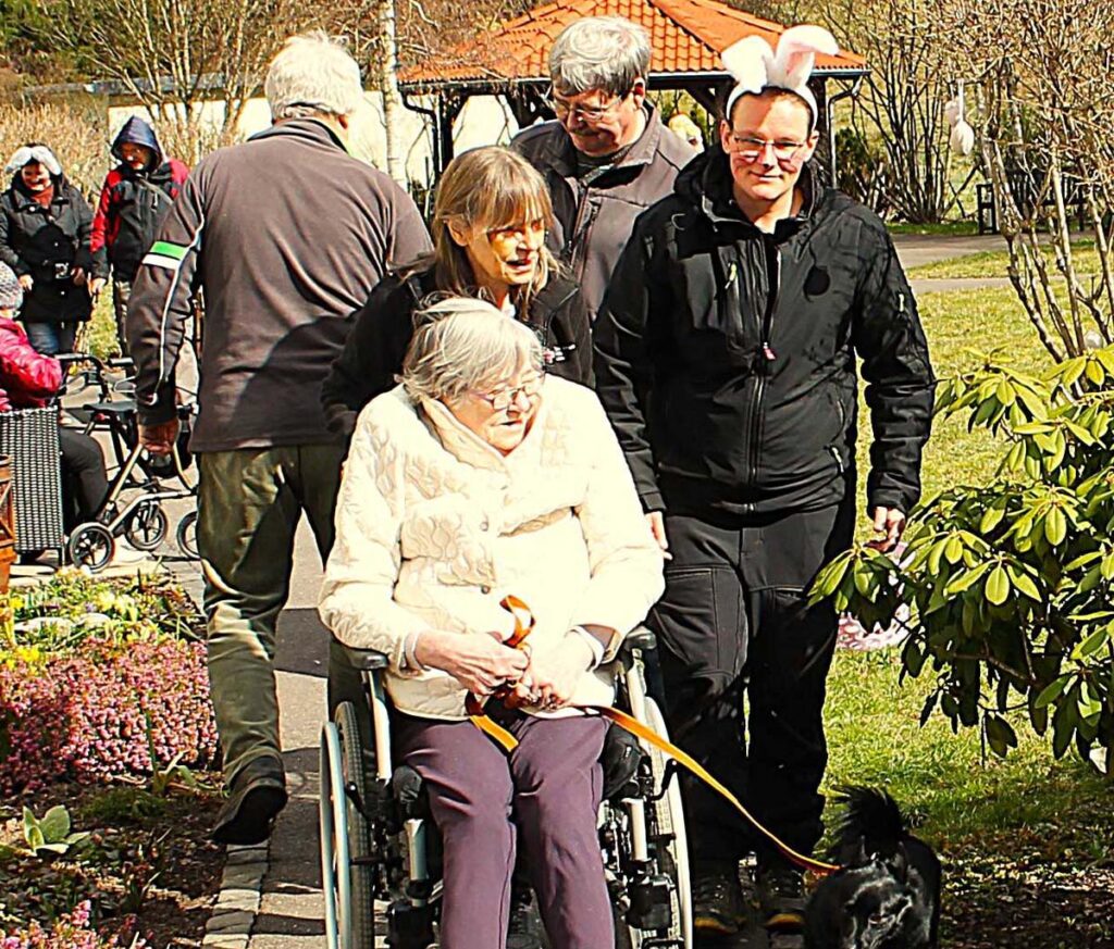Am Sonntag, d. 29.3.26 standen gleich zwei Osterbesuche auf der Agenda der Hundesportler. Zuerst besuchten sie das Seniorenheim in Gräfenroda. Der Wettergott ließ zum Glück die Sonne hinter der Wolkendecke hervortreten und schenkte etwas Wärme. Somit konnten einige Bewohner die kleine Ostervorführung im Freien anschauen und wie sich herausstellte, tatkräftig beim Programm mitwirken.