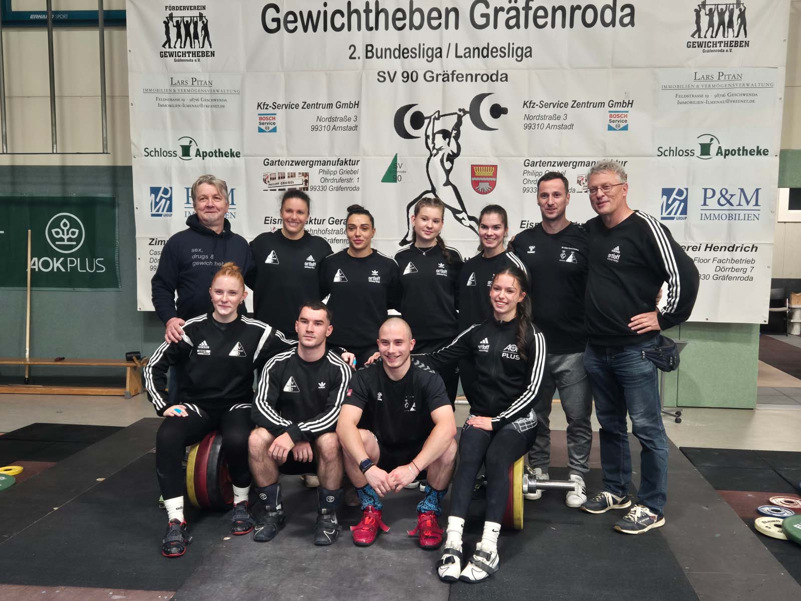 Marie Sophie Breitschuh sprang nach längerer Pause kurzfristig ein und zeigte 3 starke Versuche im Reißen und erstmals wieder 50 kg das ihr letztmalig vor 1,5 Jahren gelang. Lotta Frank war trotz 2 anstrengenden Trainingslagern in den letzten beiden Wochen in einer super Form und meisterte 61 kg im dritten Versuch. Lediglich Angelina Stenzel hatte nach überstandener Krankheit noch einigen Trainingsrückstand und konnte nur 59 kg in die Wertung bringen. Gräfenroda führte bereits mit 101,5 zu 79,5.