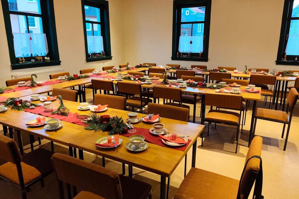 Am 07.12.2025 war es endlich soweit. Liebevoll waren die Tische gedeckt und weihnachtlich dekoriert. Die Räume in der Schenke waren schon vorher renoviert und mit neuem Inventar bestückt worden. Der Ansturm war, wie in jedem Jahr, wieder groß. Alle Plätze waren ausgebucht.