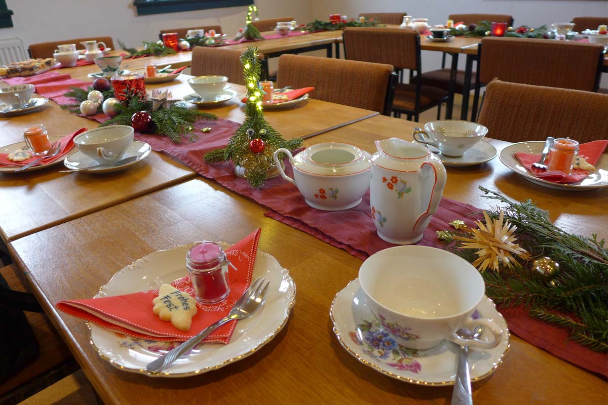 Es war nun bald soweit. Die Frauen der Heimatstube diskutierten viel über die Vorbereitung und Durchführung dieser Weihnachtsfeier. Da gab es Fragen wie: Was backen wir für Kuchen? , Was wird für den Basar gebastelt?. Die zur Tradition gewordenen Sammeltassen wurden für den Transport zusammengestellt.