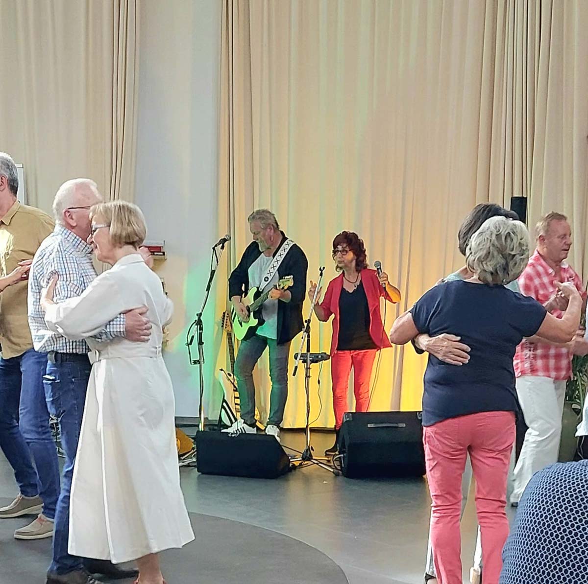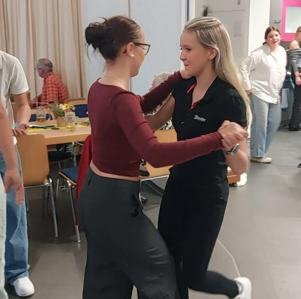 Schon beim Hinschlendern zum Generationentreff hatte man Freude im Herzen, denn die Sonne strahlte auch vom Himmel. Bunte Farbtupfer sah man schon vom Weiten, das waren die schwingenden Tanzkleider der Frauen, die diesmal schon deutlich mehr an der Anzahl waren. Danke an dem Mut zum Kleid liebe Frauen. Weiter so!