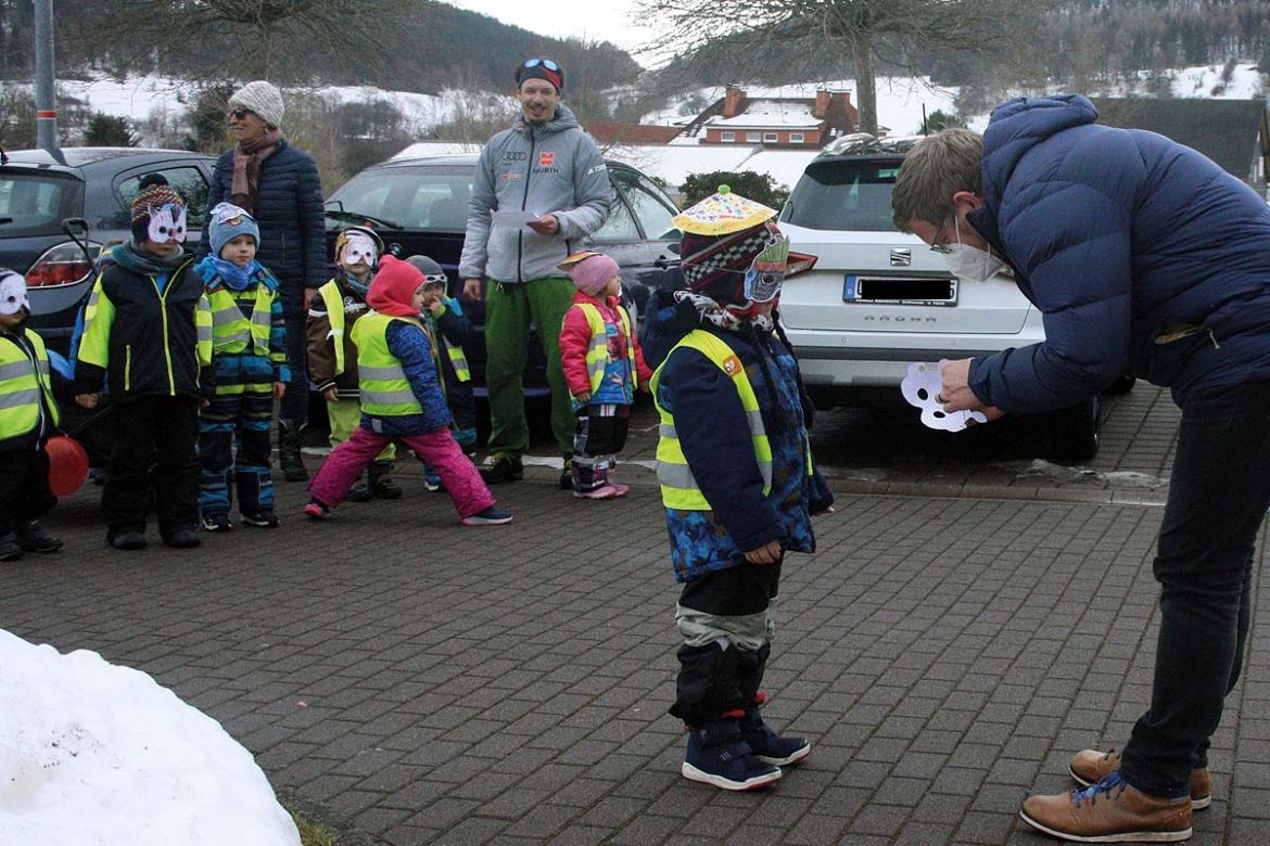 Am Aschermittwoch ist bekanntlich die Faschingszeit vorbei und die bunten Kostüme werden abgelegt. Die Familien „Gelb“ und „Grün“ trugen passend zur aktuellen Situation Maske. Aber nicht irgendwelche, sondern selbst gebastelte und bunt bemalte Masken. Der Bürgermeister bekam natürlich auch eine der bunten Masken überreicht, welche er dankend aufsetzte. Beide Familien trugen selbstverständlich auch Büttenreden vor.