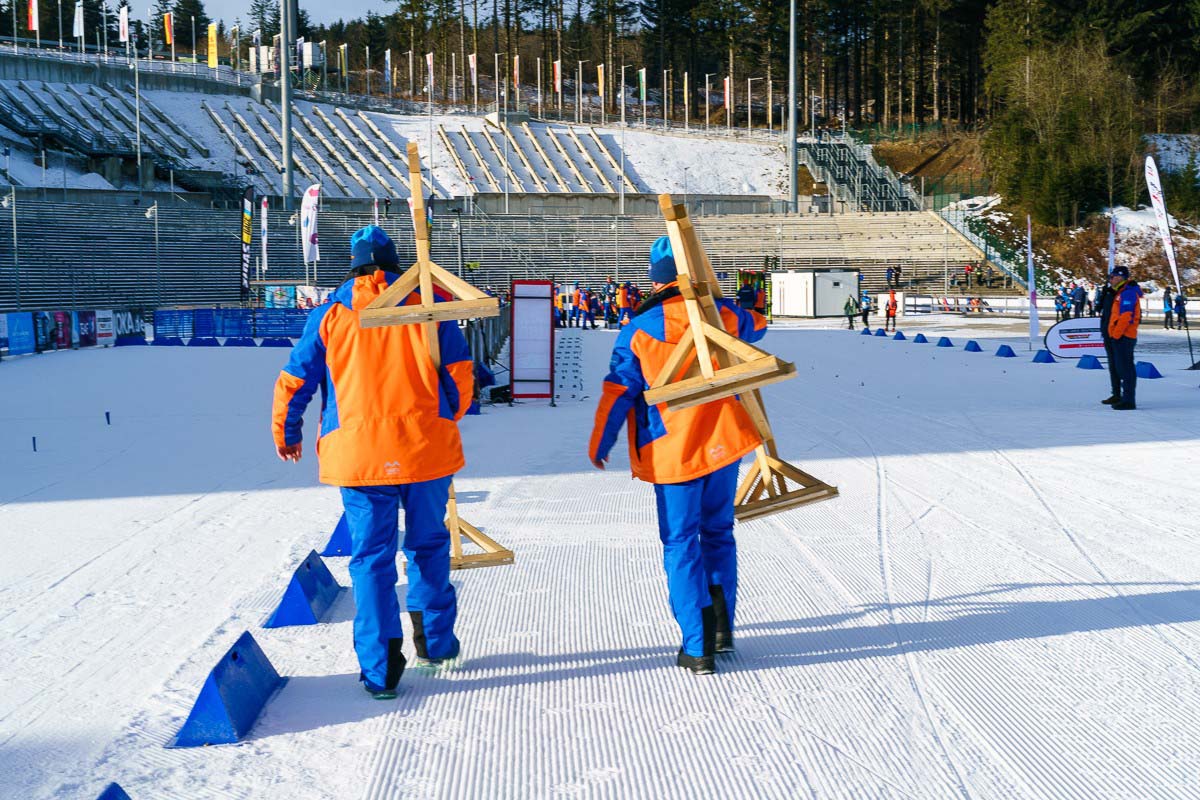 Der Samstagmorgen überraschte mit blauem Himmel und Sonnenschein. Das gute Wetter lockte eine Vielzahl von Biathlonfans und Touristen in die Lotto Thüringen Arena, die im Stadion für gute Stimmung und in der Versorgung für Umsatz sorgten. Für die teilnehmenden Sportler/innen wurden die Massenstartrennen zu einem beeindruckenden Erlebnis.