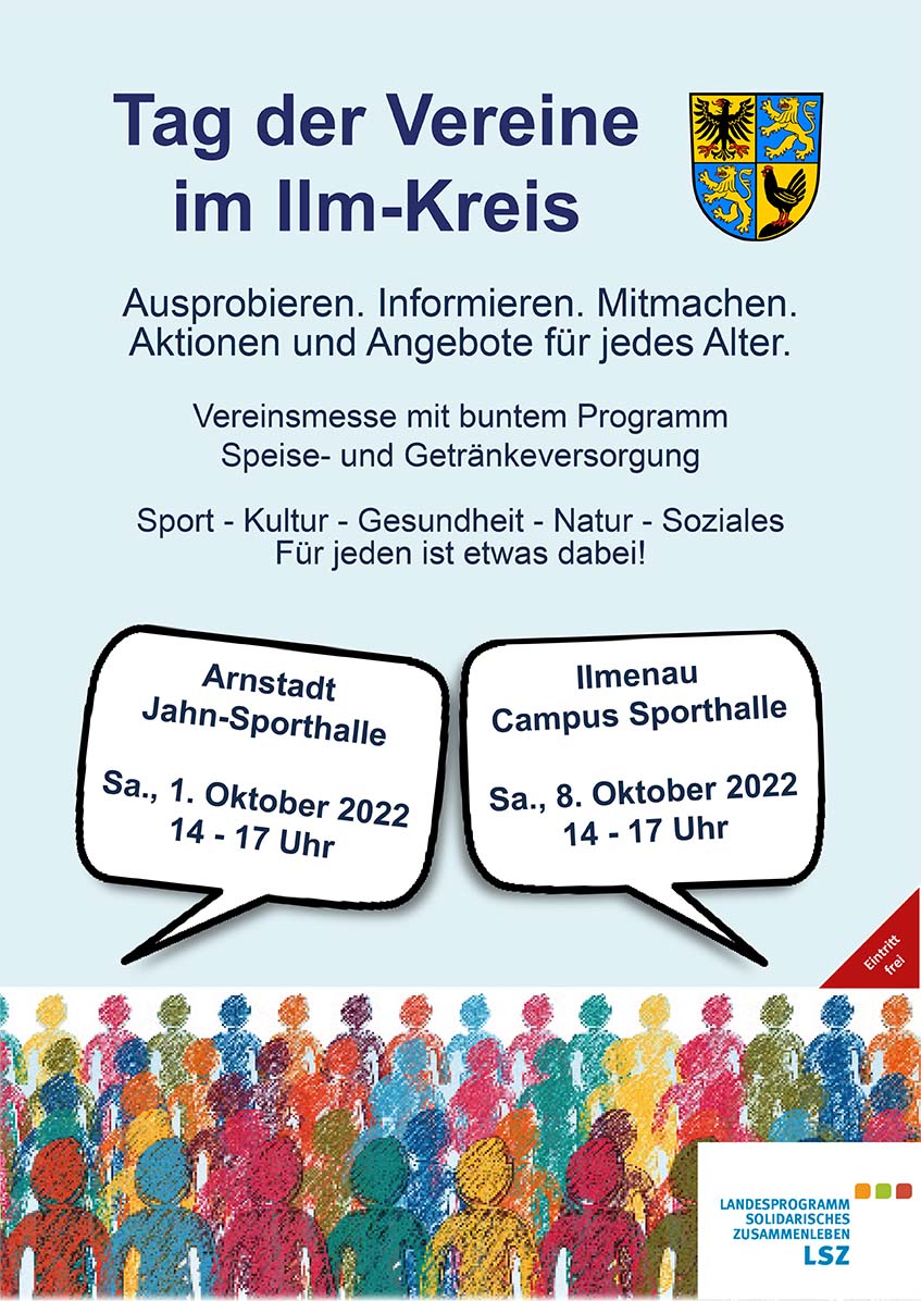 Zum Tag der Vereine in Arnstadt und Ilmenau präsentieren die regionale Vereine den Besuchern ein breites Angebot ihrer Vereinsarbeit. Neben den zahlreichen Möglichkeiten mit den Ausstellern ins Gespräch zu kommen sowie sich zu informieren, bieten die Vereine auch diesmal wieder vielseitige und interessante Angebote für Besucher jeden Alters zum Ausprobieren und Mitmachen an.