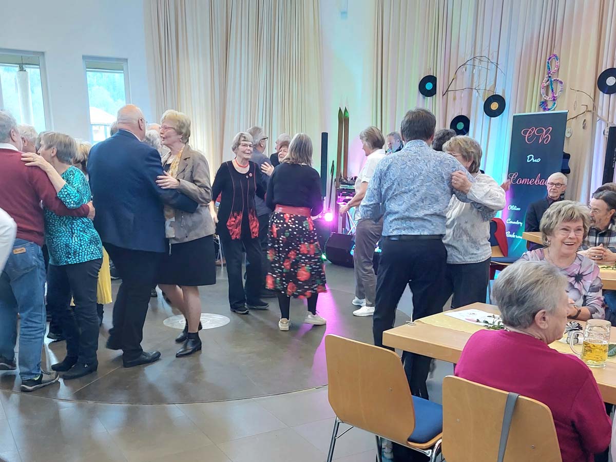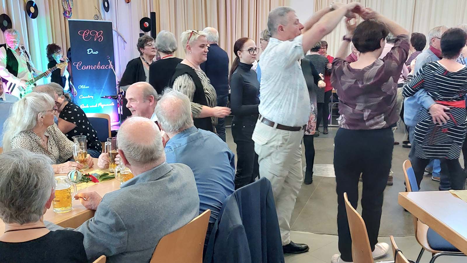 Der Dritte war der ausschlaggebende Punkt, damit es weitergeht mit dem Tanztee. Eine Veranstaltung muss sich deckeln, damit man sie weiterhin durchführen kann. Dieses Ziel haben wir diesmal erreicht und sogar einen kleinen Puffer schaffen können, für die nächsten Tee´s. Bei herrlichem Sonnenschein machte es schon Laune, am sonntäglichen Nachmittag zum Generationstreff am Schwimmbad zu schlendern, um das Tanzbein zu schwingen. Punkt 15.00 Uhr war der Saal proppenvoll und um alle Gäste unterzubringen, wurden noch Stühle und Tische zusätzlich aufgestellt. Die Musik spielte auf und sofort war der Tanzboden gefüllt. Etwas Schöneres kann es für eine Band nicht geben – eine immer volle Tanzfläche- und das bis zur letzten Runde. Sichtlich Spaß machte es unseren beiden Musikern, der Dagmar und dem Lutz vom Duo Comeback.