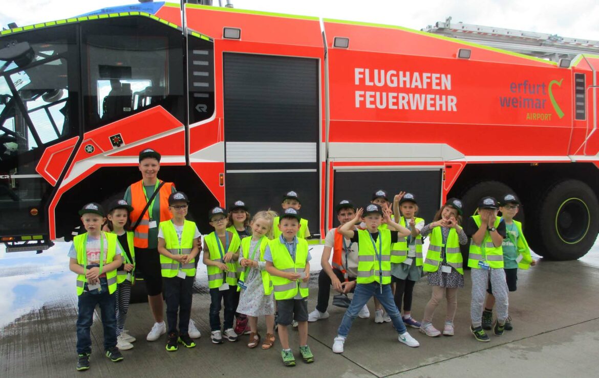 Mit den bewährten beiden Bussen unserer örtlichen Feuerwehr, in Begleitung von Steffen und Maik, war am 6. Juni am Kindergarten Abfahrt in Richtung Flughafen Erfurt/ Weimar.