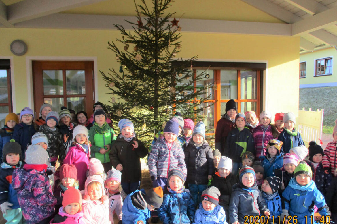 Liebevoll schmückten die Kinder an diesem Vormittag den großen Baum, der erstmals auf der neuen Terrasse einen würdigen Platz gefunden hat. Mit dekorierten Gruppenzimmern, Weihnachtsliedern und gemütlichen Geschichten stimmen sich alle auf die Weihnachtszeit ein.
