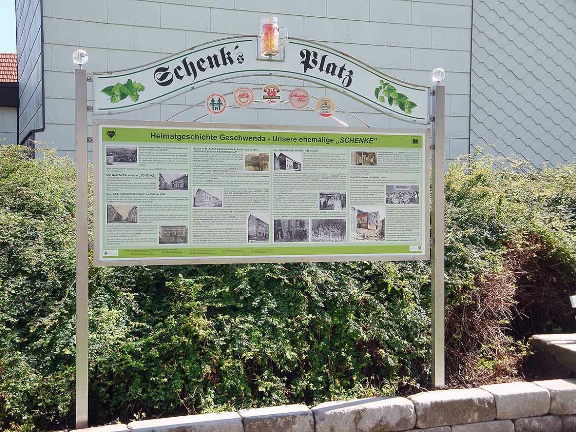 Sie hat uns viel Arbeit gemacht, die Fertigung und Aufstellung der Erinnerungstafel. Aber nun steht sie da auf dem Schenksplatz in Geschwenda. Allein hätten wir es nicht geschafft, die vielen Erinnerungen und historischen Bilder für unsere ehemalige Schenke „auszugraben“. Aber viele Bürgerinnen und Bürger unseres Ortes haben uns dabei unterstützt. Und diesen wollen wir hiermit ganz herzlich danken.