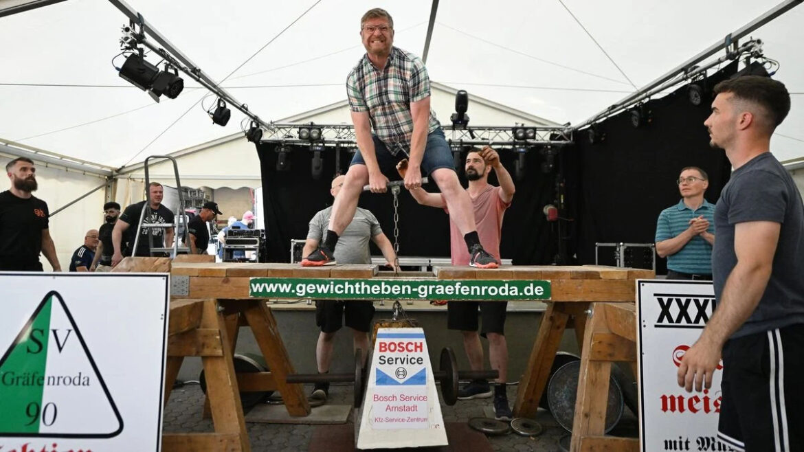 Der Apoldaer Tobias Zinserling, der als Gothaer Bierfassheber ebenso für Furore sorgt, gewann auch dieses Mal mit 401 Kilogramm, am Ende vor dem Jenaer Paul Munkelt, den er nach dessen mit 89,7 Kilogramm Körpergewicht sensationellen 366 Kilo spontan zu 401 überredete und ihm im Erfolgsfall den Sieg überlassen hätte. Munkelt scheiterte, Zinserling, immerhin 141 Kilo schwer, lag nach 371 Kilogramm schon vorn und schloss den Wettbewerb mit seinem 400er ab.